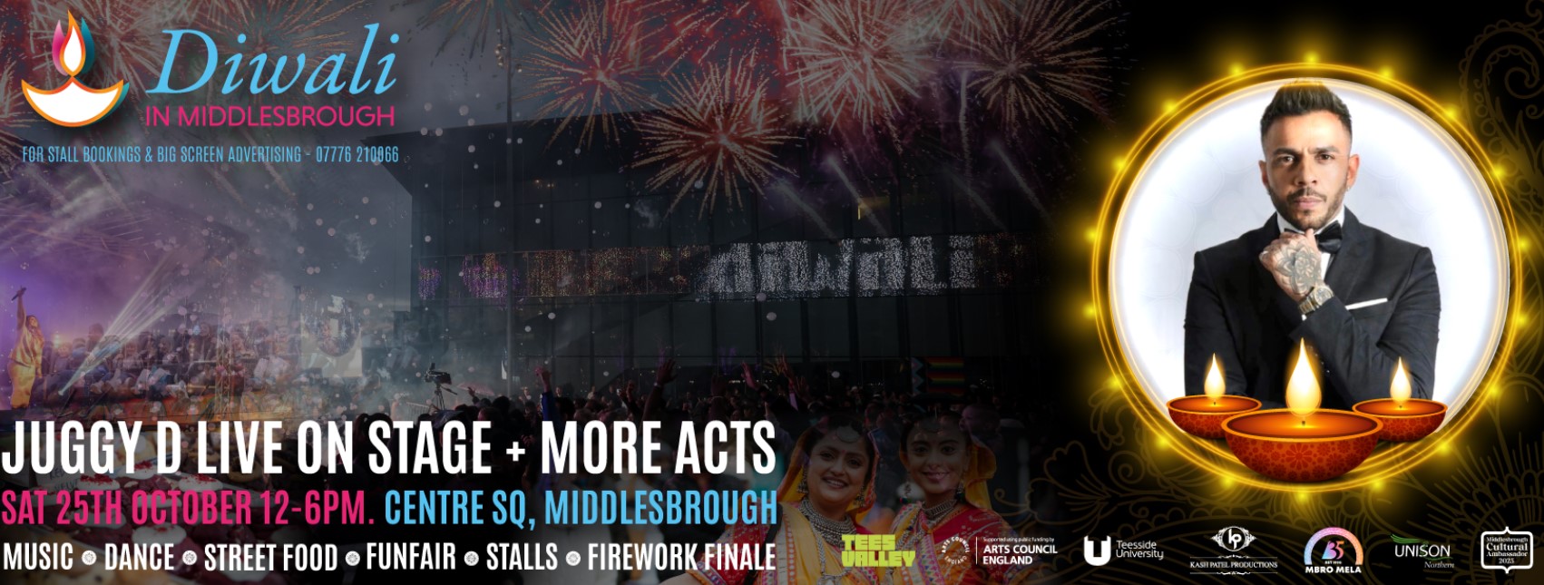 Diwali in Middlesbrough Producer Kash Patel said: “After witnessing the buzz and excitement Jay Sean created in Middlesbrough this summer, it was only fair we followed up with his counterpart – Juggy D.