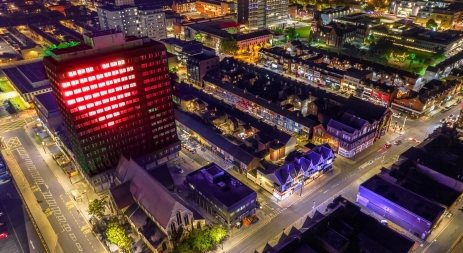 Local artist Stuart Langley's 35-metre Beating Heart has returned as a permanent feature on Church House, one of the tallest buildings in the town centre.