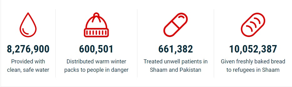 "We have been working inside communities facing huge challenges with regards to access to water, food supply, healthcare, education and war. We provide life-changing water solutions in Asia and Africa; provided food in poverty-stricken countries in Asia, Africa and the Middle East; run orphan care programmes in Turkey and Shaam and provided life-saving healthcare in Shaam, Pakistan and Turkey. Our goal is to serve as many people in need as we can and seek to expand our presence and strength globally.