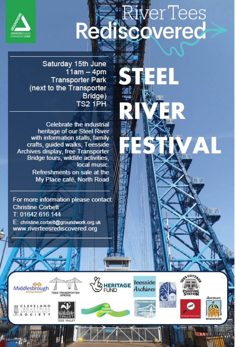 River Tees Rediscovered has teamed up with a host of community groups and partners to bring a fantastic celebration of the River Tees’ industrial heritage to Middlesbrough Council’s Transporter Park, next to the Transporter Bridge. With family crafts, guided walks, refreshments on sale at My Place (11am-2.30pm), Teesside Archives opening their doors, information, bird box building, wildlife activities, information and displays and special musical performances from acclaimed singer Richard Grainger in the Transporter Bridge visitor centre, there’s something for everyone looking to celebrate what makes the Tees such a special place.