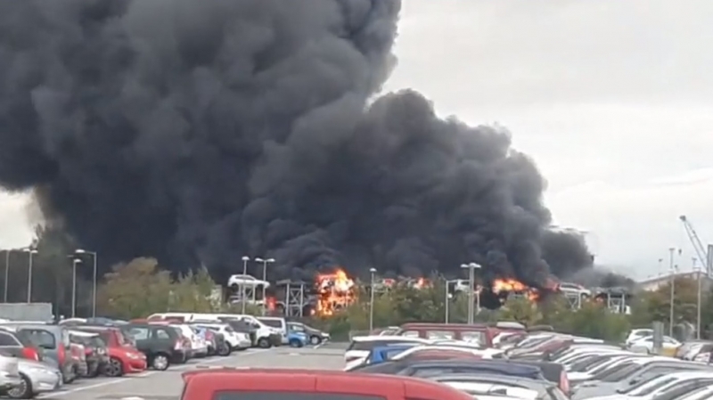 Large plumes of black smoke could be seen filling the sky from Jap Euro North East Ltd yard, next to Middlesbrough College at Middlehaven.